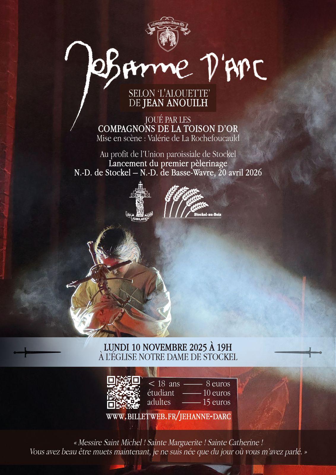 Lundi 10 novembre à 19H théâtre de Jean ANOUILH sur Jeanne d’Arc à ND de Stockel. Voyez le flyer